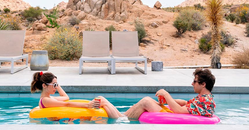 Палм-Спрингс или Зависнуть в Палм-Спрингс 2020 года, в правильном переводе Гоблина. Кино представляет из себя весьма необычную смесь романтической комедии и фантастики, в основе сюжета лежит происшествие, которое сблизило судьбы двух молодых людей, и в тоже время поставило их в безумное положение, выход из которого не очевиден.